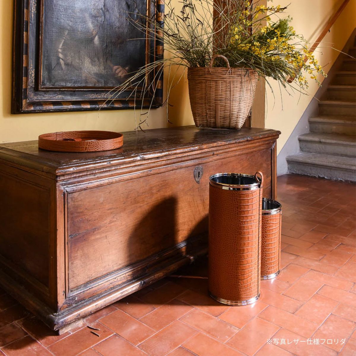 オフィスや寝室をシックに見せるカーフスキンレザーのダストボックス
